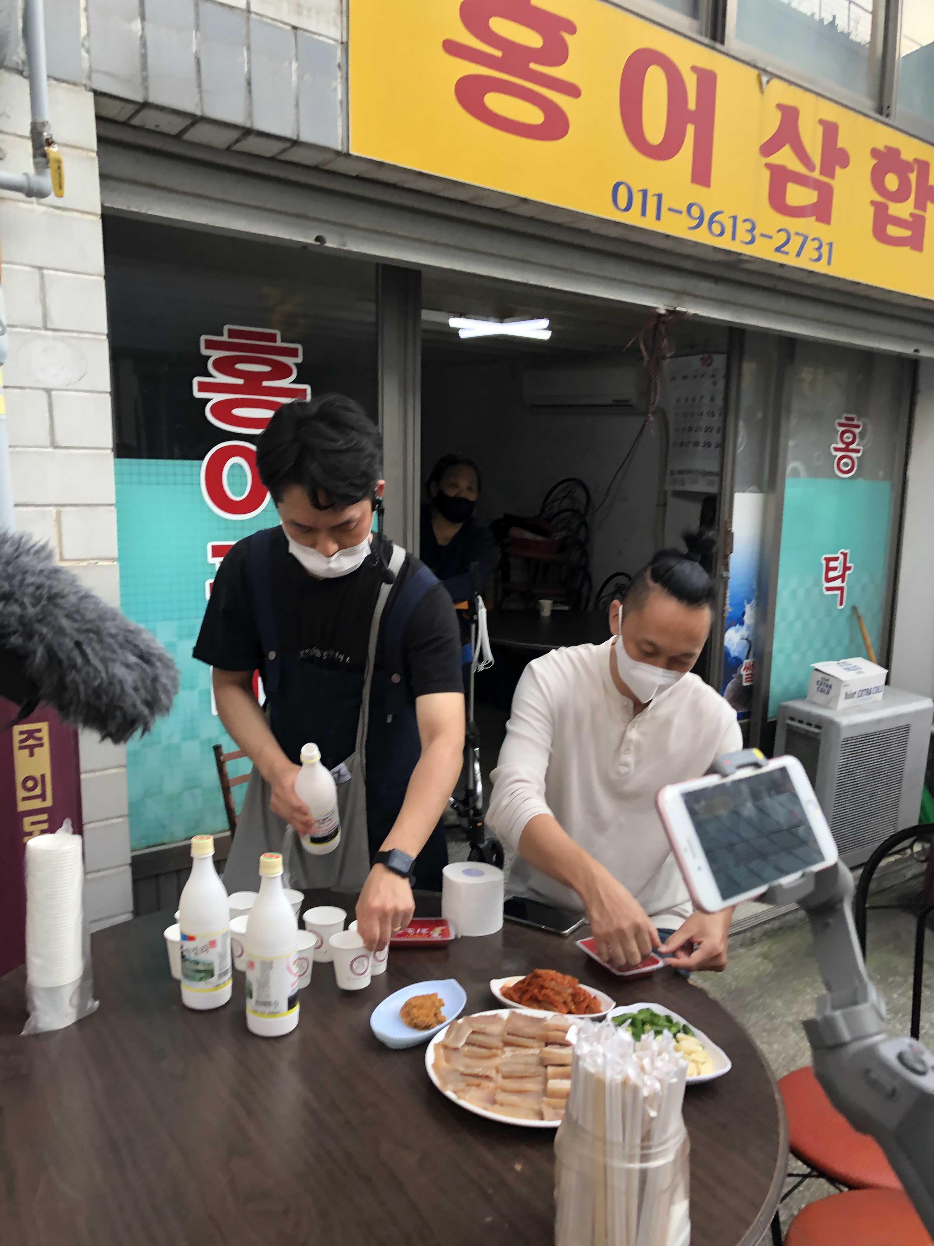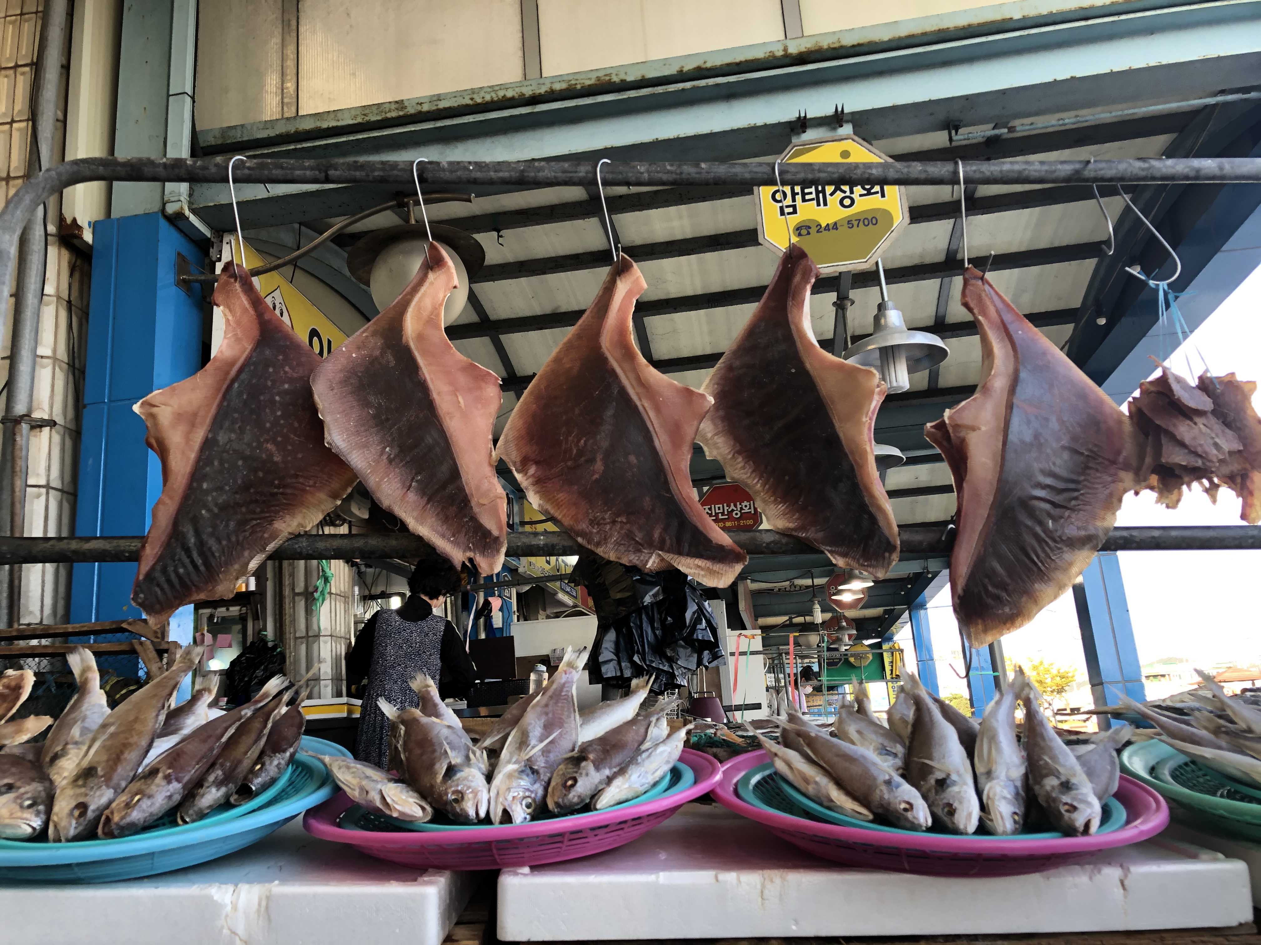 이 가게의 대표음식인 홍어찜, 양념이 적절하고 지나치게 삭히지 않아 홍어의 고유한 맛을 낸다. 진도 인근 섬이 고향인 주인 부부는 목포로 나와 보리마당 인근에 가게를 낸지 55년이 됐다고 한다. 처음에는 달동네 주민들이 저녁에 가게에 와서 소주를 마실 때 간단한 안주를 만들어 주기 시작했는데 지금은 홍어찜, 민어찜, 닭백숙 까지 요리해 팔고 있다. 이 가게에서 제일 맛있는 음식은 젓갈을 넣지 않고 생새우 국물로 담근 남도식 김치이다. 시원하고 새콤하게 익어 입안에 도는 산기가 적당했다. 젓갈 넣은 오래된 김치의 곰삭은 맛은 전혀 없다. 보이는 것보다 훨씬 맛있는 김치다. 양념장을 올려 제공되는 모두부 역시 술안주로 그만이다. 할아버지는 닭 먹는 사람들이 가장 입이 무난하고 민어나 홍어 먹는 사람들이 입이 까다롭다고 말한다. 쉬고 싶어도 예약이 없이 가끔 들르는 사람들 때문에 문을 닫을 수가 없다고 한다.